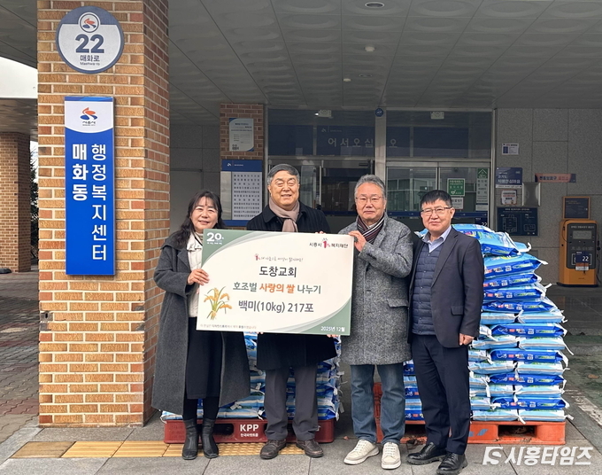 [시흥타임즈] 연말을 앞두고 시흥시 매화동에 따뜻한 나눔의 손길이 이어지고 있다. 매화동 행정복지센터(동장 김기세)에 지난 12월 15일 도창교회가 방문해 관내 취약계층을 위해 백미 10kg 133포를 기부했다.이번에 전달된 백미는 지난 11월 한 달 동안 도창교회가 주관하고, 매화동 주민자치회와 시흥시 쌀연구회, 북시흥농협, 시흥시 농업인단체협의회, 시흥시1퍼센트복지재단이 함께 참여해 십시일반 마련한 것이다. 도창교회는 조선시대 선조들이 구휼미를 비축해 어려운 백성을 도왔던 ‘호조벌 정신’을 바탕으로, 지역사회 나눔 활동을 16년째 이어오고 있다.