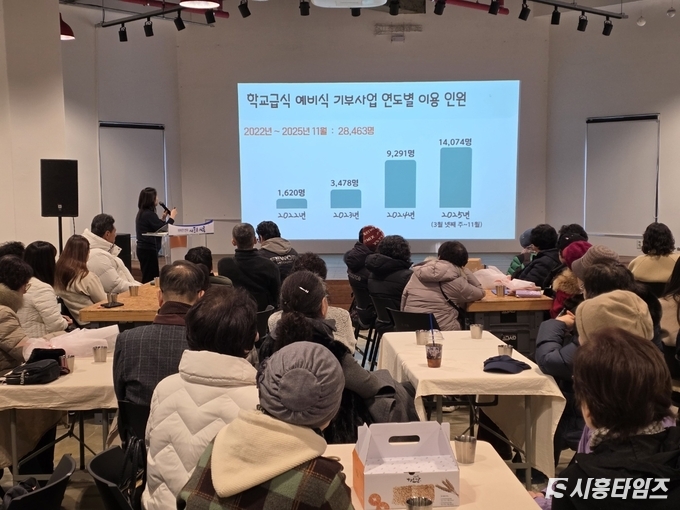 [시흥타임즈] 시흥시학교급식지원센터(이하, 센터)는 지난 12월 15일 청년협업마을 가치관 다목적홀에서 ‘2025년 학교급식 예비식 기부사업 연말 간담회’를 열고 한 해 동안의 성과를 공유했다.