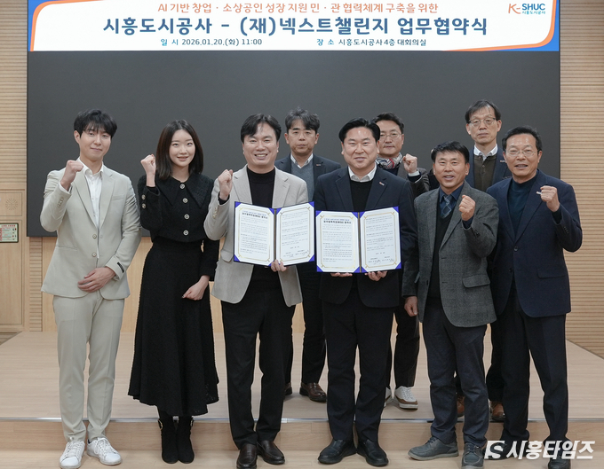 시흥도시공사, AI 기반 창업·소상공인 성장 지원을 위한 업무협약(MOU) 체결 [시흥타임즈] 시흥도시공사(사장 유병욱, 이하 공사)는 지난 20일, 재단법인 넥스트챌린지(이하 넥스트챌린지)와 AI를 기반으로 창업·소상공인 성장 지원 민·관 협력 체계 구축을 위한 업무협약을 체결했다고 밝혔다. 넥스트챌린지는 스타트업 생태계 민관 거버넌스를 선도하는 글로벌 액셀러레이터 재단이다. 창업 교육을 통하여 혁신적인 스타트업 인재 양성 등 미래 창업생태계 구축을 위한 다양한 사업을 추진하고 있다. 협약의 주요 내용은 ▲시흥시 양질의 일자리 창출을 위한 AI 미래 창업도시 공급망 솔루션 공동 연구 및 인프라 다각화 ▲창업도시 생태계 고도화를 위한 공공·민간 파트너십 기반의 공동사업 ▲전문 인력 및 네트워크를 활용한 공동 세미나·포럼 등 협력사업 추진 ▲관내 소상공인의 경쟁력 강화를 위한 마케팅·홍보·창업 역량 강화 지원 협력 등이다. 양 기관은 이번 협약을 통해 실질적인 협력사업을 공동으로 추진하고, 관내 소상공인이 지속 가능한 경쟁력을 확보할 수 있도록 다양한 지원 방안을 마련해 나갈 계획이다. 유병욱 사장은 “이번 업무협약은 공사가 보유하고 있는 공공 인프라 네트워크와 넥스트챌린지의 혁신적 전문성을 활용한 상생협력 플랫폼을 구축하는 데 의의가 있