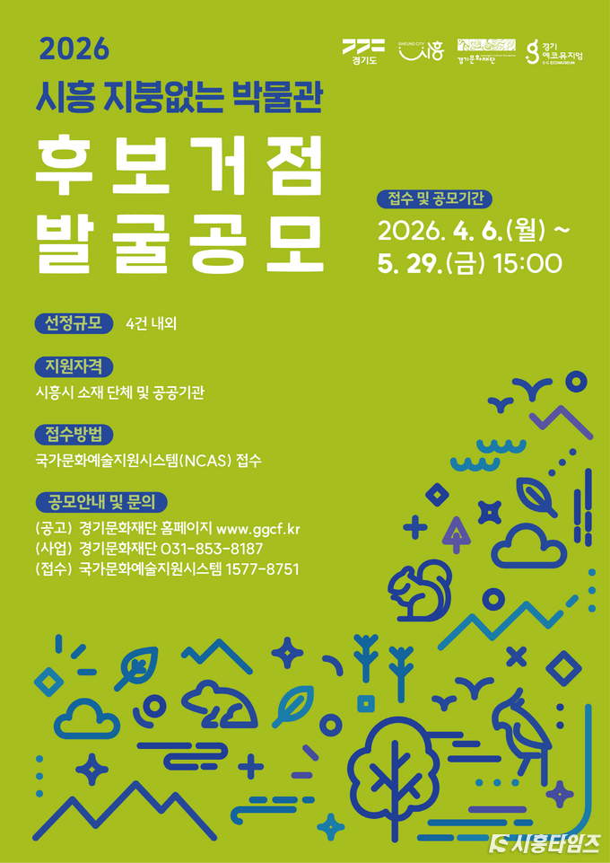 [시흥타임즈] 시흥시는 경기도, 경기문화재단과 손을 잡고 지역 고유의 문화자원과 생활문화를 발굴·활용하기 위한 ‘2026 시흥 지붕없는 박물관(에코뮤지엄)’ 후보 거점 발굴 공모를 오는 5월 29일까지 추진한다.