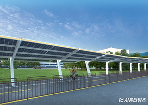 [시흥타임즈] 시흥시는 16일 시화방조제 자전거길에서 ‘경기 햇빛 자전거길 1호’ 디자인 태양광 조성을 기념하는 준공식이 열렸다고 밝혔다. ‘경기 햇빛 자전거길’ 사업은 자전거길 상부 유휴공간을 활용해 태양광 발전시설을 설치하고 시민 편의시설과 경관 디자인을 결합한 생활밀착형 재생에너지 인프라 조성 사업이다. 사업 대상지는 정왕동 2376번지 시화방조제 자전거길 초입 840m 구간으로, 약 761.6kW 규모의 디자인 태양광 발전시설이 설치됐으며 사업비 약 17억 원이 전액 민간 자본으로 투입됐다. 특히 발전사업을 통해 창출되는 ‘햇빛소득’을 시민 편익으로 환원하는 방식으로 쉼터, 자전거 공기주입기, 운동기구, 야간 경관조명 등 다양한 시민 편의시설도 함께 조성됐다. 이번 사업은 기존의 태양광 설치 방식에서 벗어나 시화호의 물결과 갈매기 비상을 형상화한 웨이브형 디자인 태양광과 LED 경관조명을 적용해 시화호 경관과 조화를 이루도록 조성된 것이 특징이다. 시민들이 휴식과 여가를 즐기면서 재생에너지를 체감할 수 있는 공간으로 꾸며졌다. 이날 준공식에는 김동연 경기도지사와 임병택 시흥시장, SKI E&S 관계자, 경기도 시‧군‧구 에너지 담당 공무원, 도